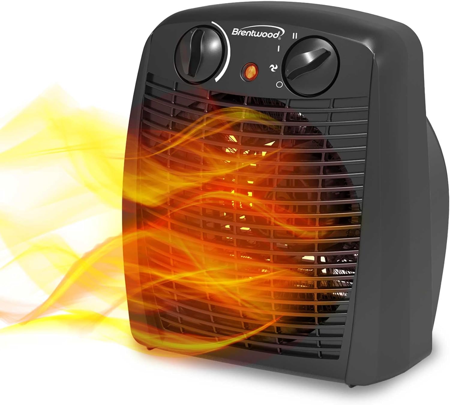 Use the Brentwood(R) H-F306BK 1,500-Watt-Max Portable Electric Space Heater and Fan to keep you toasty when it's chilly and cool when it's warm. Its fast heating element produces 2 levels of safe and steady heat - 750 watts or 1,500 powerful watts. It quickly warms rooms up to 300 sq. ft., delivering up to 5,000 BTUs. It features an energy-saving, fully adjustable thermostat. The safety tip-over switch turns the unit off when tipped over, preventing accidents. A safety mesh guard protects the heating element from direct contact with hands and clothing while the cool-touch, lightweight housing and easy carry handle makes this unit easy to move from room to room, desk to floor, and more. The power indicator light conveniently illuminates when turned on. The unit includes overheat protection with safety fuse. During warmer months, conveniently switch to fan only mode to cool off!