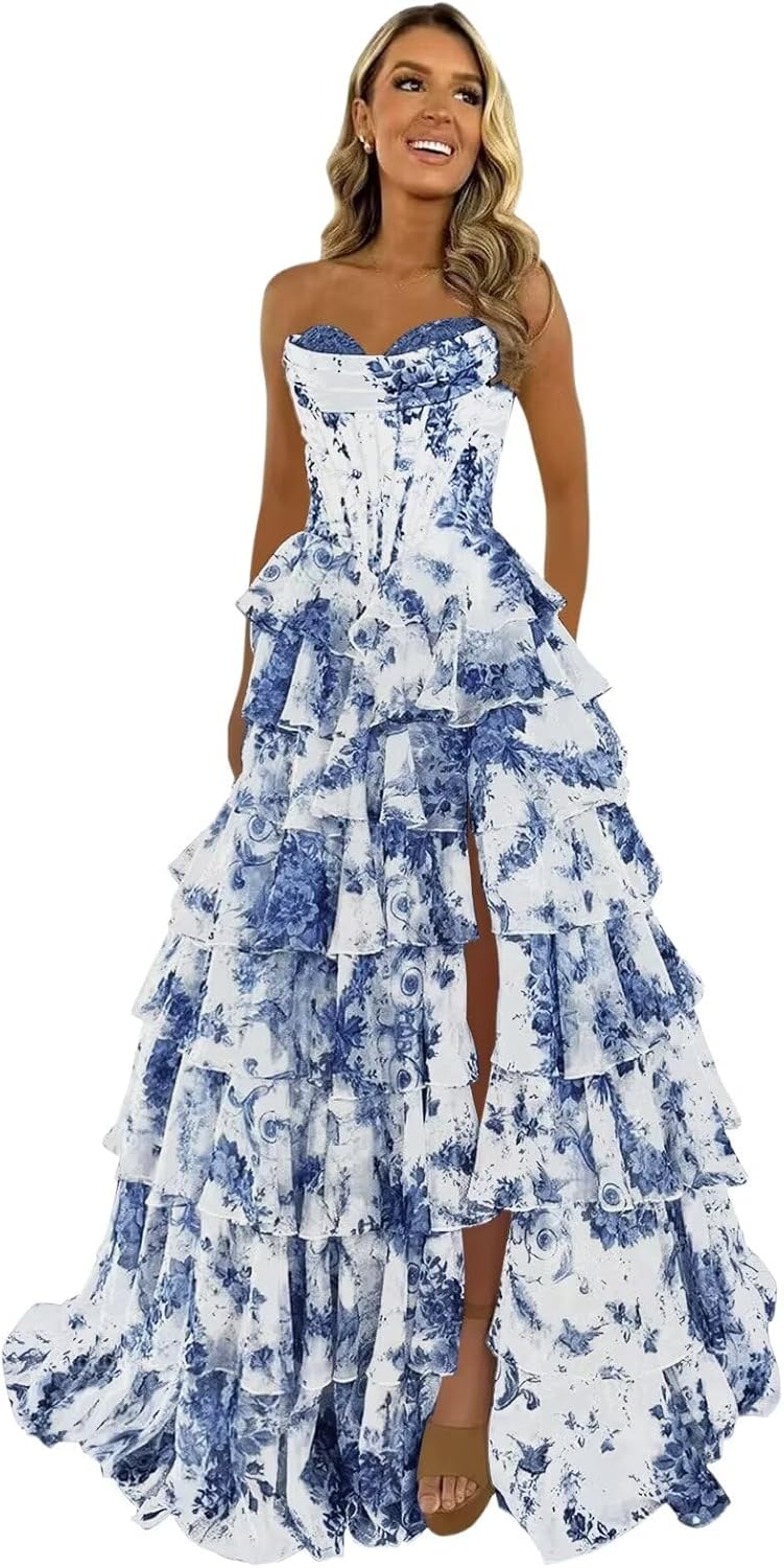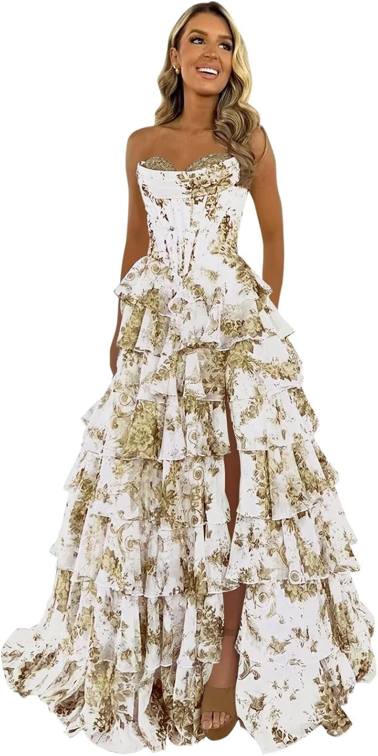Welcome to keosin store.keosin Lace Corset Tiered Prom Dress 2026 Long Strapless Ruffle Chiffon Formal Evening Gown with SlitLength: Floor LengthSleeve: SleevelessNeckline: Sweetheart NeckFabric: Chiffon and LaceTarget Consumer Group: WomenCustomization Tips:If you are unsure which size is suitable for you. We suggest that you measure your body, and we offer free customization services. You need to measure the following areas:1. Chest circumference of __ inches/or __ centimeters2. Waist circumference of __ inches/or __ centimeters3. Hips __ inches/or __ centimeters4. Height (without shoes) __ inches/or __ centimeters5. Heel length __ inches/or __ centimeters6. clavicle to ground __ inches/or __ centimeters7. Date you need this dress: ________.Soon, a perfectly fitted dress will come towards you.